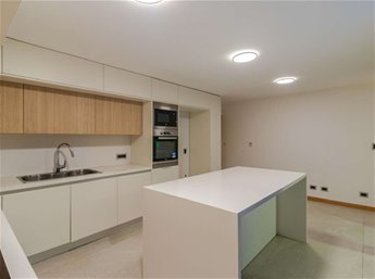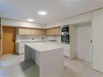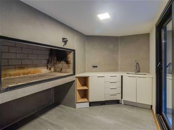 -Gran cocina definida con isla, y además anafe, horno y micro empotrados.